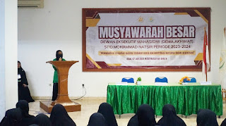 Pada hari Ahad, 7 Juli 2024, suasana Aula Sakinah, Komplek Muslimat Center Cipayung begitu terasa bersemangat dengan diselenggarakannya Musyawarah Besar (MUBES) oleh Dewan Eksekutif Mahasiswa Akhwat STID Mohammad Natsir. Tema besar yang diangkat adalah "Mewujudkan integritas melalui tindakan nyata dan kontribusi bersama dalam organisasi".
